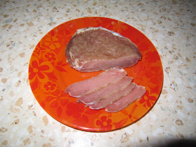 Вырезки не оказалось, попробовала на куске карбонада. Кусок см 3-4 толщиной был.